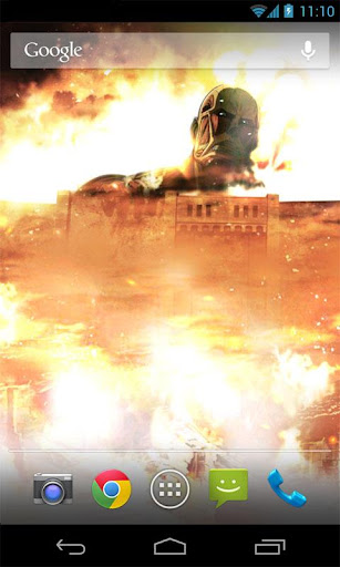 進擊的巨人,當今全球最火爆的動漫,其受歡迎程度相當於動漫界的江南style,本應用是基於進擊的巨人製作的一款動態桌布,效果有火焰燃燒、飛舞的火星、閃電以及閃電時抖動屏幕等,這些效果用戶均可以自行設定,壁紙的場景很火爆喔。