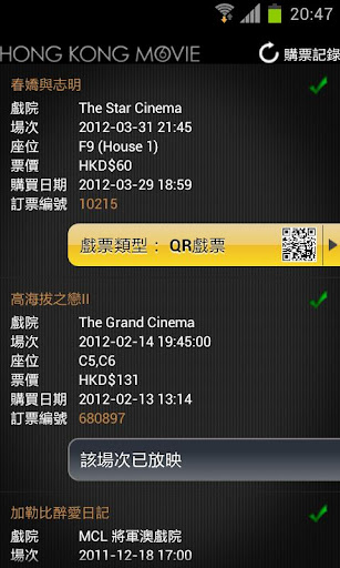 Hong Kong Movie 為全港首個集手機購票及電影社群於一身的 Android 應用程式。最新版本的 Hong Kong Movie 除了提供手機即時購票服務外,更增設全港獨家 QR戲票,於 STAR Cinema 率先應用。透過 Hong Kong Movie,用戶可即時瀏覽超過 40 間戲院的場次、最新電影介紹、座位表、戲院資料及各場電影實時銷售情況等,並即時就電影評分及發表評論,盡情享用最全面的流動電影資訊平台。