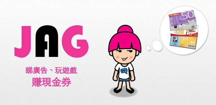 JAG 是一個讓會員透過手機 (如:收看短片﹑獲取獨家優惠或參加不同的活動) 賺取JAG積分, 兌換喜愛商品禮券的平台。禮券種類超過三十款︰包括麥當勞﹑ Starbucks﹑7-11﹑SOGO﹑電影票…等等!